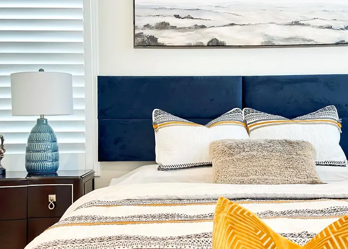 Eine Terrasse bietet zudem einen Ausblick auf den Garten. Die Close To Uci 4B&4B Villa Irvine Eastwood verfügt über ein Badezimmer mit einem Whirlpool, einer getrennten Toilette und einer Dusche. Ein Haartrockner, ein Wäschetrockner und Handtücher werden auch angeboten.